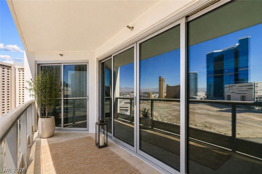 High-rise living in the heart of Las Vegas! This well-appointed 1-bedroom, 1.5-bath residence at Turnberry Towers features an open-concept layout with hard surface flooring throughout, fresh interior paint, and a private balcony showcasing stunning views of the Las Vegas Strip and resort-style pool. The kitchen offers stainless steel appliances, granite countertops, and a convenient eat-in bar. Includes a stacking washer and dryer for added ease. Turnberry Towers delivers true resort-style living with 24-hour guard-gated security, front desk concierge, valet service, a resort pool and spa, tennis courts, putting green, conference room, and resident lounge. Pet-friendly community with a dog park and beautifully maintained lush grounds.