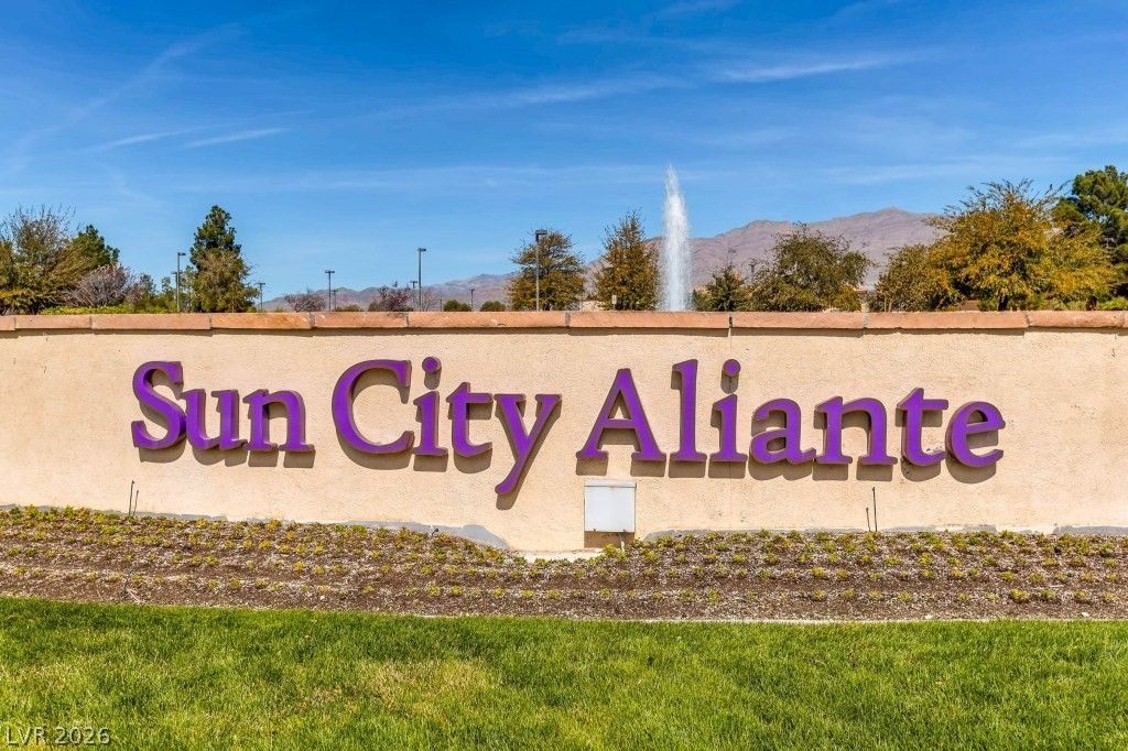 This Laurel model with CASITA truly has it all! Rare golf course frontage on the Aliante Golf Course, featuring breathtaking mountain and fairway views. This highly desirable home welcomes you with a private front courtyard, perfect for morning coffee or evening relaxation. The open-concept floor plan is ideal for gathering with family and friends. The kitchen offers granite countertops and abundant cabinet storage. The spacious primary suite features dual sinks and a large walk-in closet. The private casita includes a ¾ bath, making it ideal for guests, a home office, or a hobby space. Step into the backyard and enjoy a covered patio that provides generous shade, while the stunning golf course and mountain views are the true highlights of this exceptional property. Located in the premier 55+ community of Sun City Aliante, residents enjoy resort-style amenities including golf, clubhouse, fitness center, pools, social clubs, and a vibrant year-round social calendar.