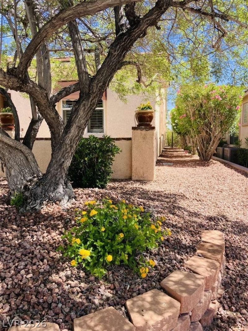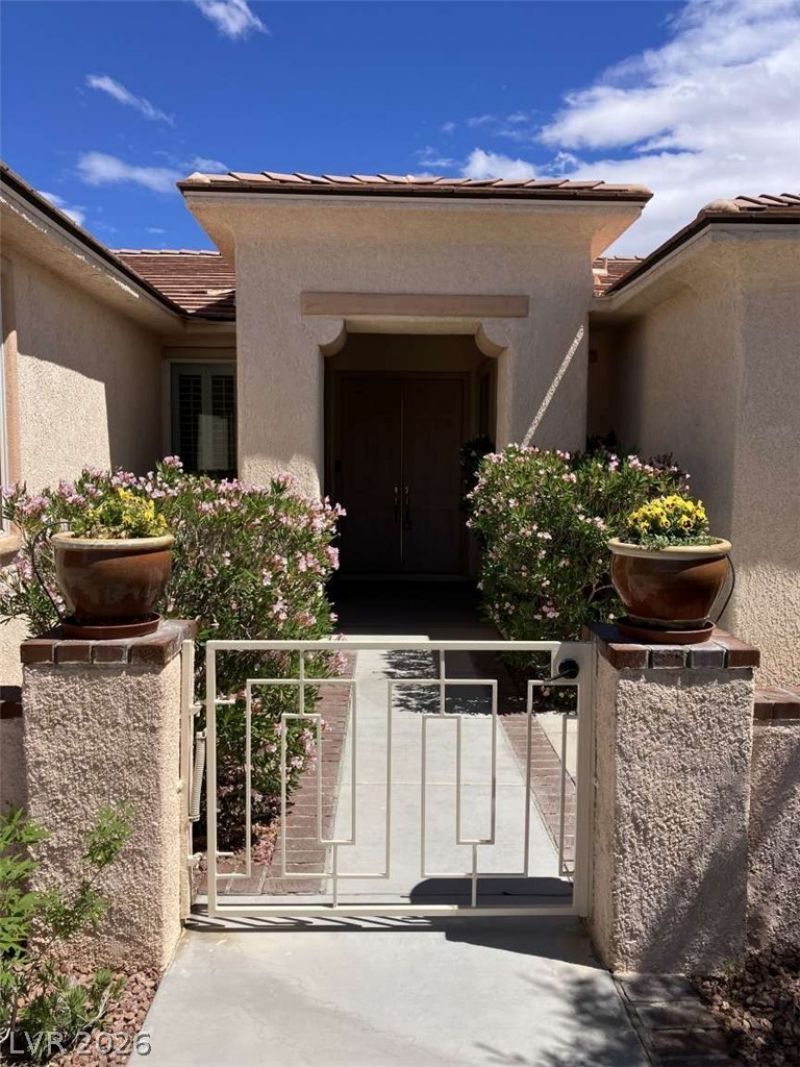 Lovely, Move-In Ready, 2 Bed/2 Bath ?6110' Model in Siena, a Guard Gated 55+ community located in Summerlin South. Fabulous lot with a gated front patio and a covered back patio with a fenced in yard at approximately 1683/SF. New paint throughout, new chandeliers, new ceiling fans with lights, new kitchen hardware and a new built in microwave. Stainless steel appliances with a gas cooktop. Plantation shutters, built in closets, laundry room with washer, dryer & cabinets, tile, and Pergo in bedrooms. 2 car garage with storage and more! Community resort like amenities including indoor and outdoor pools and spa, fitness center, golf, tennis, pickleball and a clubhouse with activities galore! Seller willing to contribute towards buyer closing costs.