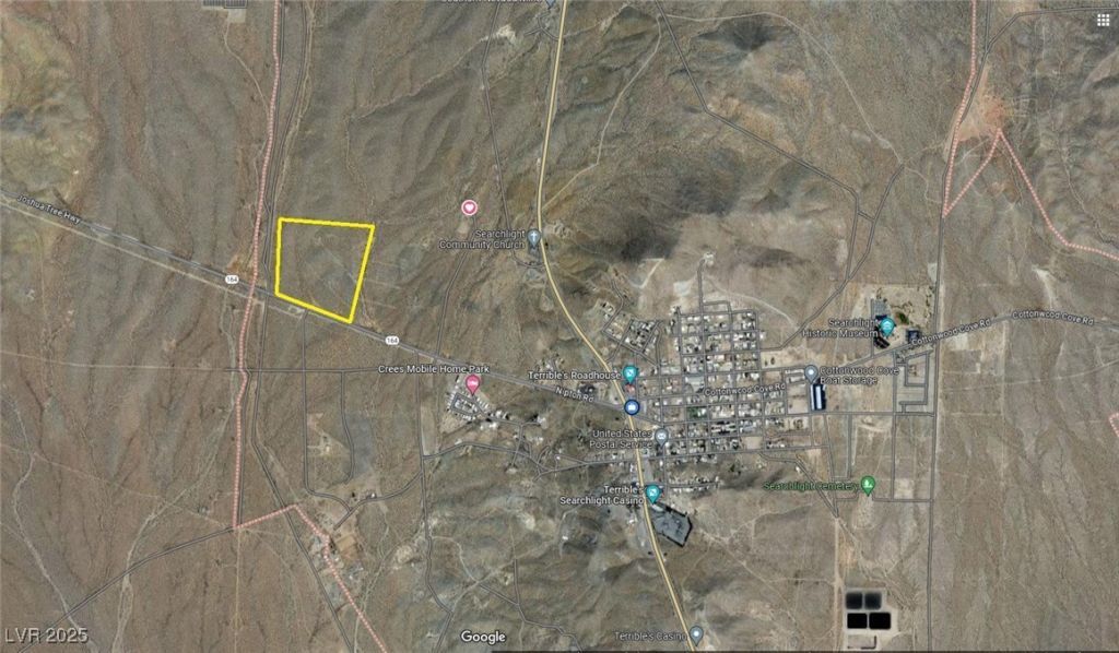 Largem level parcel with nearly 800 feet of highway frontage on US 164/Nipton Road, just 1/2 mile from downtown Searchlight! Searchlight is the gateway to Lake Mead, the new Avi Kwa Ame National Monument, and all things outdoors in Southern Nevada! Easy access to I-15 via Highway 164, to Las Vegas and Phoenix via US 95. Property has Joshua Trees and other native plants. Searchlight has all the comfort of a small town, just minutes away from the glitz and glamor of Las Vegas. Room for horses. ATV riding, and other outdoor fun right on the property. Zoned Single Family Residential.